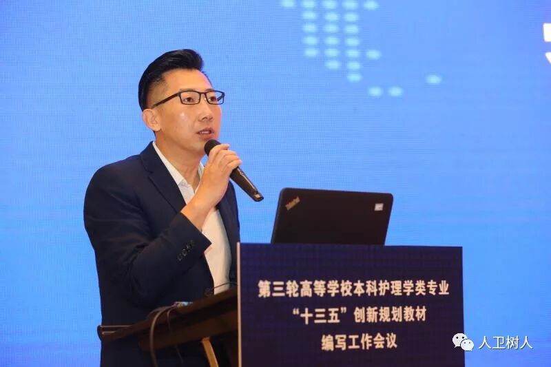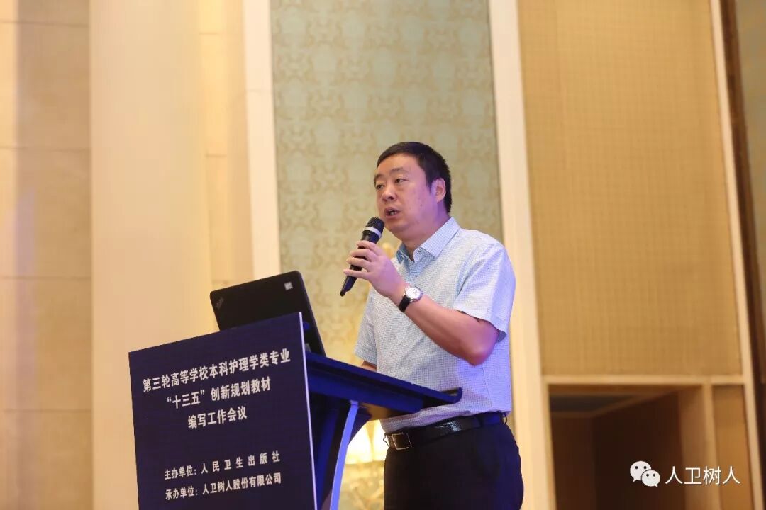 2019年4月23-25日,第三轮高等学校本科护理学类专业“十三五”创新规划教材评审委员会成立会议暨编写工作会议在上海召开,人民卫生出版社副总编辑杨晋编审,人民卫生出版社医学职业教育中心常务副主任窦天舒,郑州大学护理学院院长陈长英教授,人卫树人股份有限公司董事长张曙光,人卫树人股份有限公司常务副总张雪竹,人卫树人股份有限公司董事、副总经理、教育出版中心主任李占彪,以及来自全国80余所院校的500余位专家代表参加了会议。